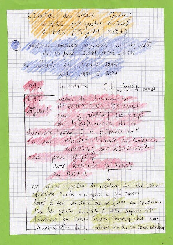 de Monique Reboul, née en 1941 à moniqa ray-bool au travail de dame depuis 1995 ou portrait de l'artiste propriétaire qui travaille depuis 1992 sur des montages de CITATIONS, INSTALLATION A LIRE données à voir dans un PARCOURS qui s'inscrit, au fil des quatre saisons, dans un patient LABYRINTHE naturel, inventaire à la Prévert d'objets, de formes, de MOTS, mis en images...
